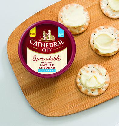 Made with Mature Cheddar, Cathedral City Spreadable Mature - Lighter is smooth and mellow, with all of the flavour but 30% less fat. A comforting spread that delivers ‘a taste of home’